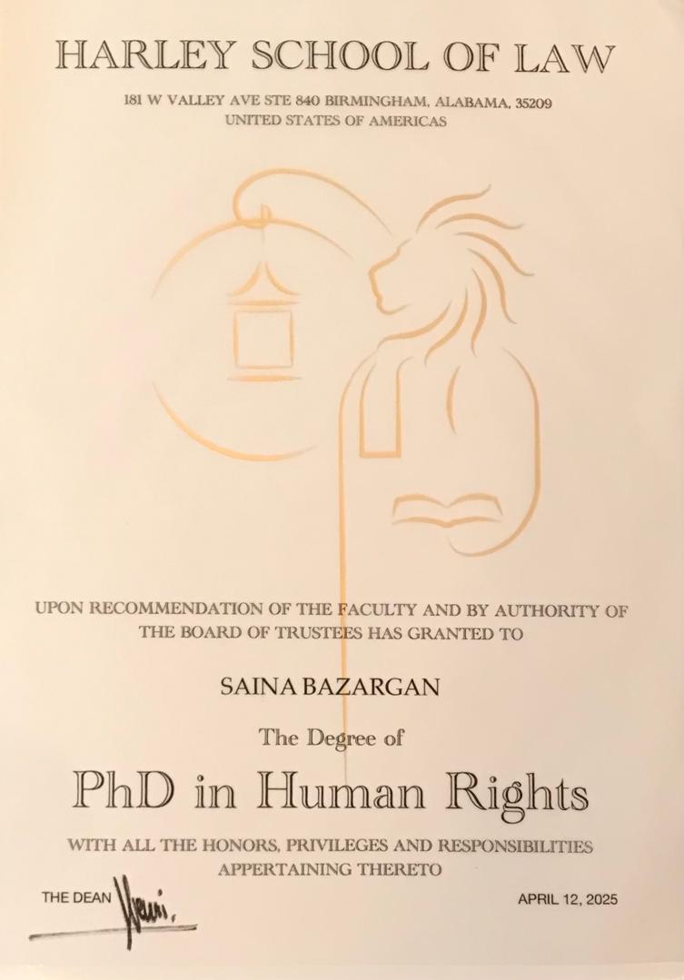 اعطای دکتری افتخاری حقوق بشر به یک محقق ایرانی